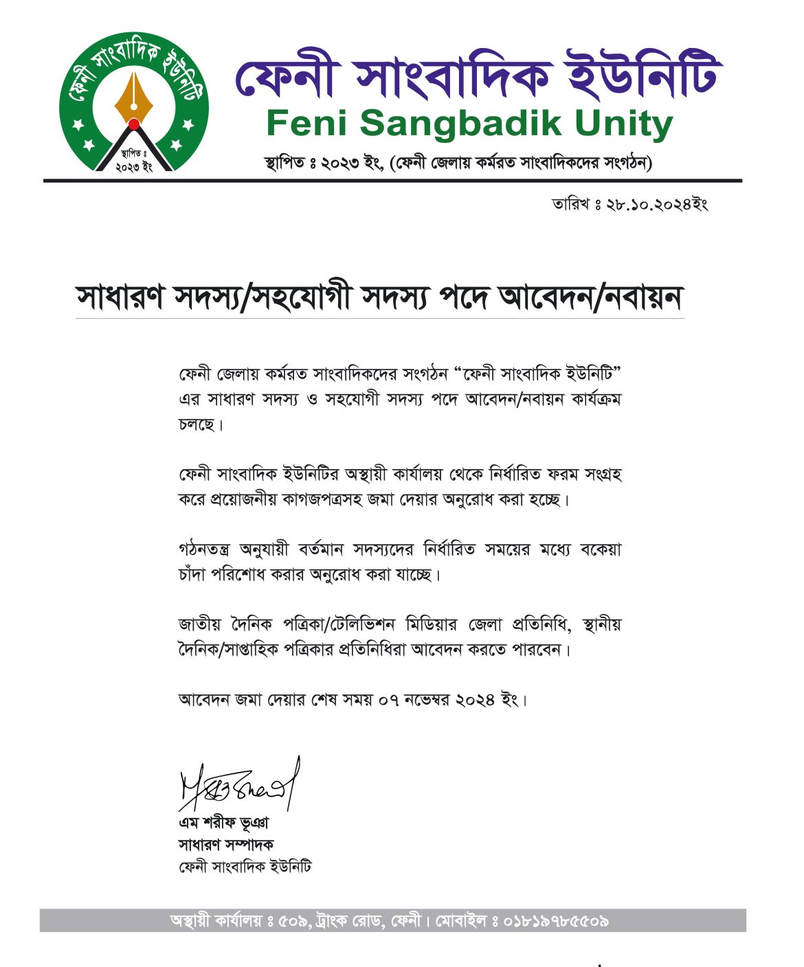 এম শরীফ ভূঞা, ফেনী :