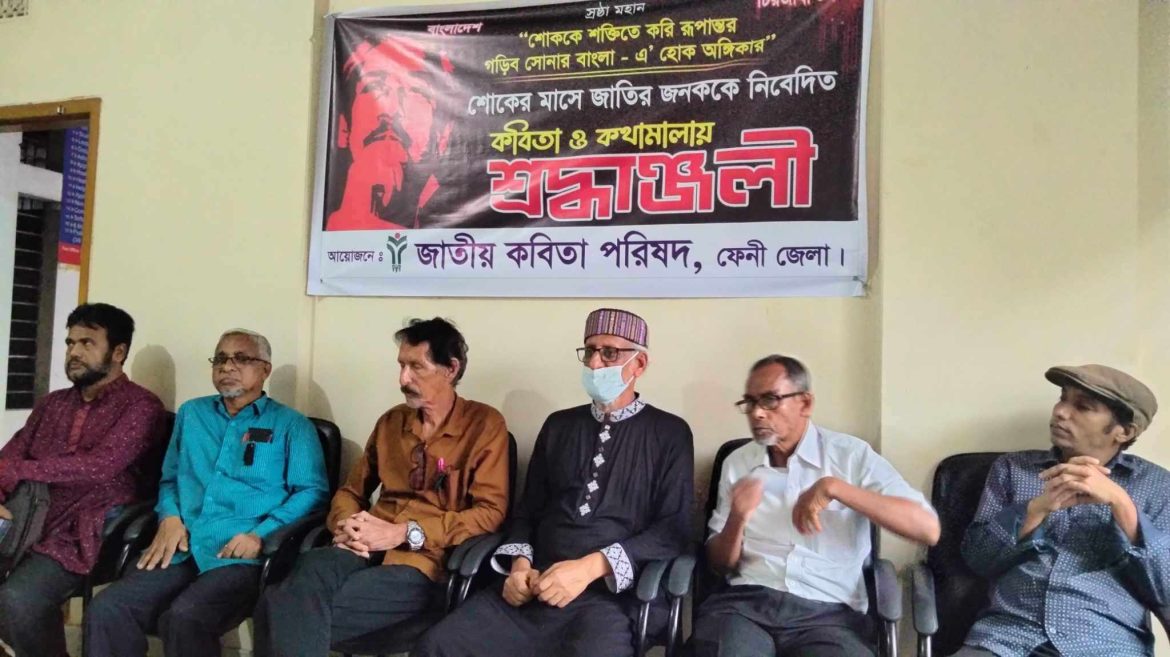 জাতীয় কবিতা পরিষদ ফেনী জেলার আয়োজনে কবি উত্তম নাথের সঞ্চালনায় কবি ইকবাল চৌধুরীর সভাপতিত্বে উপস্থিত ছিলেন কবি মনজুর তাজিম, এডভোকেট শাহীন মজুমদার, ইকবাল আলম, ওবায়েদ মজুমদার,বাদল দেবনাথ , তাজুল ইসলাম, ইকবাল হোসেন জামশেদ, উত্তম অরল,শাহ আলম, নাসরিন জেরিন সুলতানা,সবুজ তাপস,ফয়েজুর রহমান,হাসান সাঈদ, ইসহাক মজুমদার ।